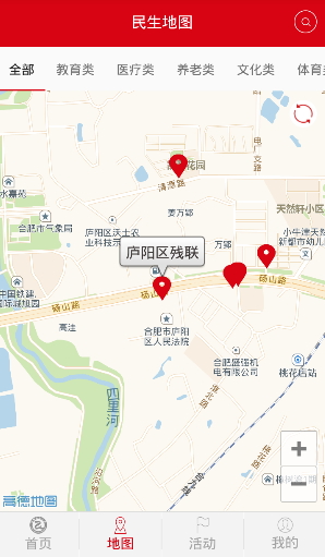 二是精准的民生地图打造“民生网络”,项目设施一目了然。“民生·庐阳”APP通过与百度地图合作,将全区2007年以来各项民生工程项目点的详细信息标注到百度地图上,制作成了全区的“民生地图”。群众可以非常方便地在地图上精确查询某一项目点的位置、详细地址、联系电话、管护人员等信息,还可以搜索就近位置的项目点相关信息,同时还享受地图提供的公交换乘、驾车导航等服务。