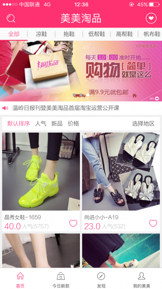 美美淘品是一家专做女鞋批发的APP,专为电商、淘宝卖家、天猫卖家、微商提供一手优质女鞋厂家货源,帮助卖家一键发布到淘宝、并提供一件代发服务、同时提供退换货服务。