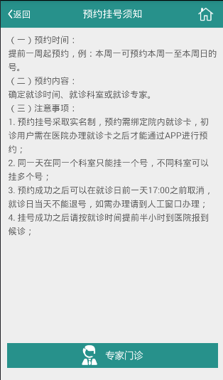 【预约挂号】提供本院全部科室专家门诊的预约挂号功能,患者只需一部手机,即可完成预约挂号,并且随时随地可以查看叫号情况。