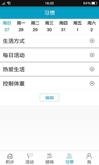 习惯:订约健康习惯,通过每天打卡帮助你养成一个健康的生活方式。