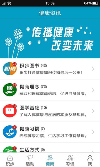 积步是一款响应全民健康生活方式行动,致力于提高全民健康素养的专业手机应用软件。是集运动减肥健身、卡路里计算、基础健康管理、健康行为养成、健康知识传播、互动交友﹑健康促进类活动管理等功能于一体的综合服务系统。
