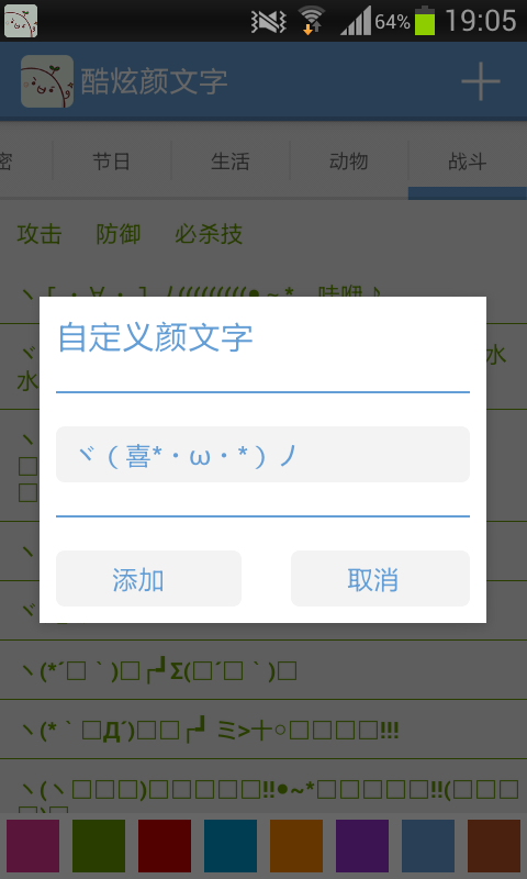 还在用文字加表情图片那你就out了,快来下载使用酷炫颜文字。 ヾ(* ̄ ̄ ̄ ̄▽ ̄ ̄ ̄ ̄*)ノ? 想用手机打出这样的文字吗,马上下载《酷炫颜文字》您就能轻松的用手机发送颜字啦。 《酷炫颜文字》包含义时下最流行的颜文字“kaomoji”一千多种以上,您还可以自己添加自己收藏的颜文字。 《酷炫颜文字》界面非常简洁,操作十分简单,您只需要简单点击喜欢的颜文字,软件就自己帮你复制到粘贴板上,您就可以通过任何的通讯软件发送给自己的好友啦。 马上下载体验吧!ヾ(o′▽`)?哈哈?咚咚!!
