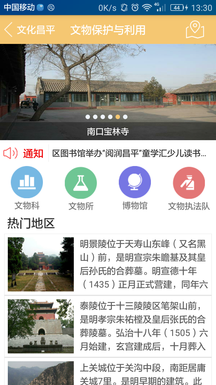 文化昌平是一款昌平文化委推出的文化宣传应用,内容包括昌平的热点新闻、昌平文化机构以及各种文物,旨在推广大众文化,便利化场所管理,是文化宣传数字化的引领者。