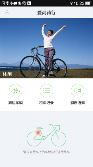 爱尚骑行通过蓝牙4.0技术将手机与自行车锁相连接,进行开锁关锁的功能。并且能够通过软件搜索附近的车辆以及广告信息,使出行更加方便快捷。