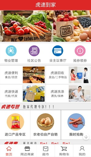 虎速到家app是一款社区生活服务平台,通过这款APP可以让用户畅享智慧生活,虎速到家提供干洗、送水、垃圾回收、快递、订餐外卖等服务,全心全意提高社区居民的生活品质,有任何的需求只需要在平台上查询,一键下单,我们的人员将主动上门服务。