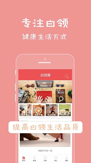 白领窝是一个专为白领族打造的一款健康生活方式的购物app,可以直接在手机上淘到各种白领最喜爱的商品。