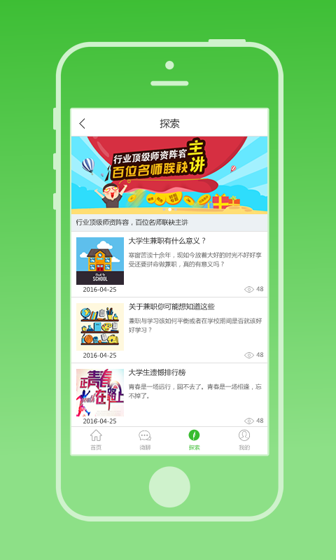 3.该APP共搭建了三种,分别为兼职平台、校园街平台、资讯平台