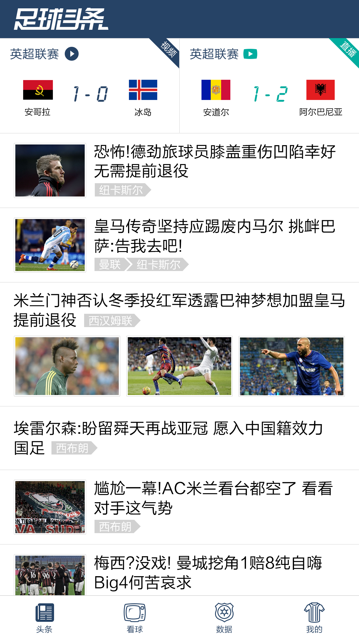 1. 订制足球新闻,选择关注球队,只看关注球队的相关报道;