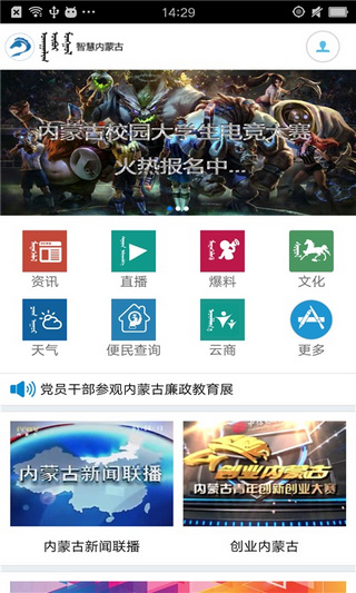 智慧内蒙古是内蒙古广播电视台布局新媒体的一款城市信息服务信息平台,是广电网、通讯网、物联网与互联网“四网融合”,电视屏、电脑屏、手机屏、车载屏“四屏互动”的新媒体产品。打造了“五大应用平台”的二十余项功能——新闻资讯整合传播平台、城市公共信息查询平台、市民生活信息服务平台、互动娱乐社交平台和城市移动互联网电商平台。