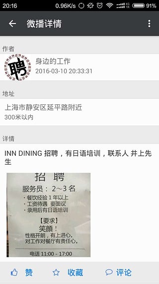 - 可以用微播告诉大家附近的通知、招聘、优惠、寻物、活动等信息
