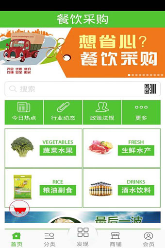 餐饮采购app是一款网络购物应用,是基于移动互联网平台而研发的手机客户端。在此平台上,用户可以了解到移动广告行业最新的行业资讯、互动产品服务信息,并可以提供商户、行业渠道商、行业客户、终端用户等互动交流信息。