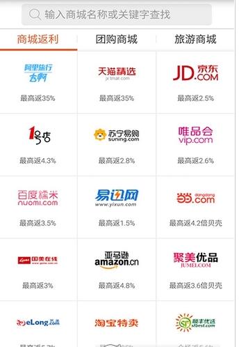 1、直接进入购物返利频道,找到对应的商城,通过本站点击去购物即可。