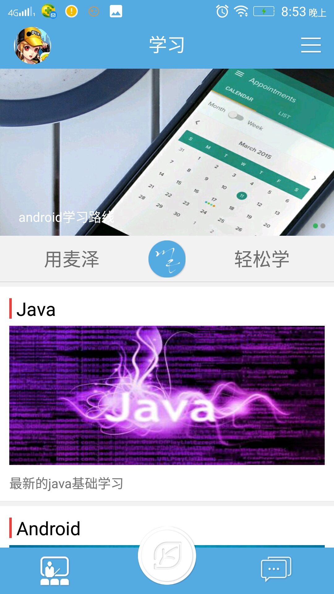 麦泽课堂初步版本,简单的UI界面,新的IT学习资讯,新的技术博客,新的社区交流圈,欢迎反馈宝贵的意见,以供我们不断改进,帮助你学习,界面有待优化