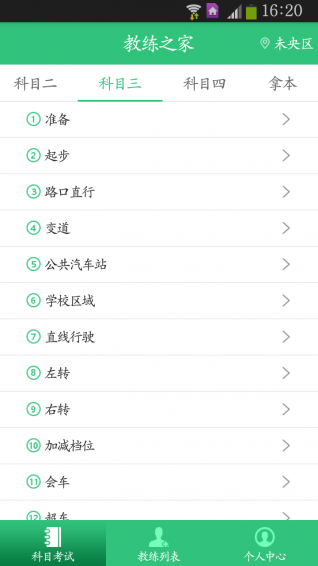 教练之家1.0.1版,该版本App属于,专为新的驾考改革所做的,功能全部是面向教练之家学员,方便学员自主预约教练,查看考试科目一,科目四考试真题,科二科三模拟语音指令。