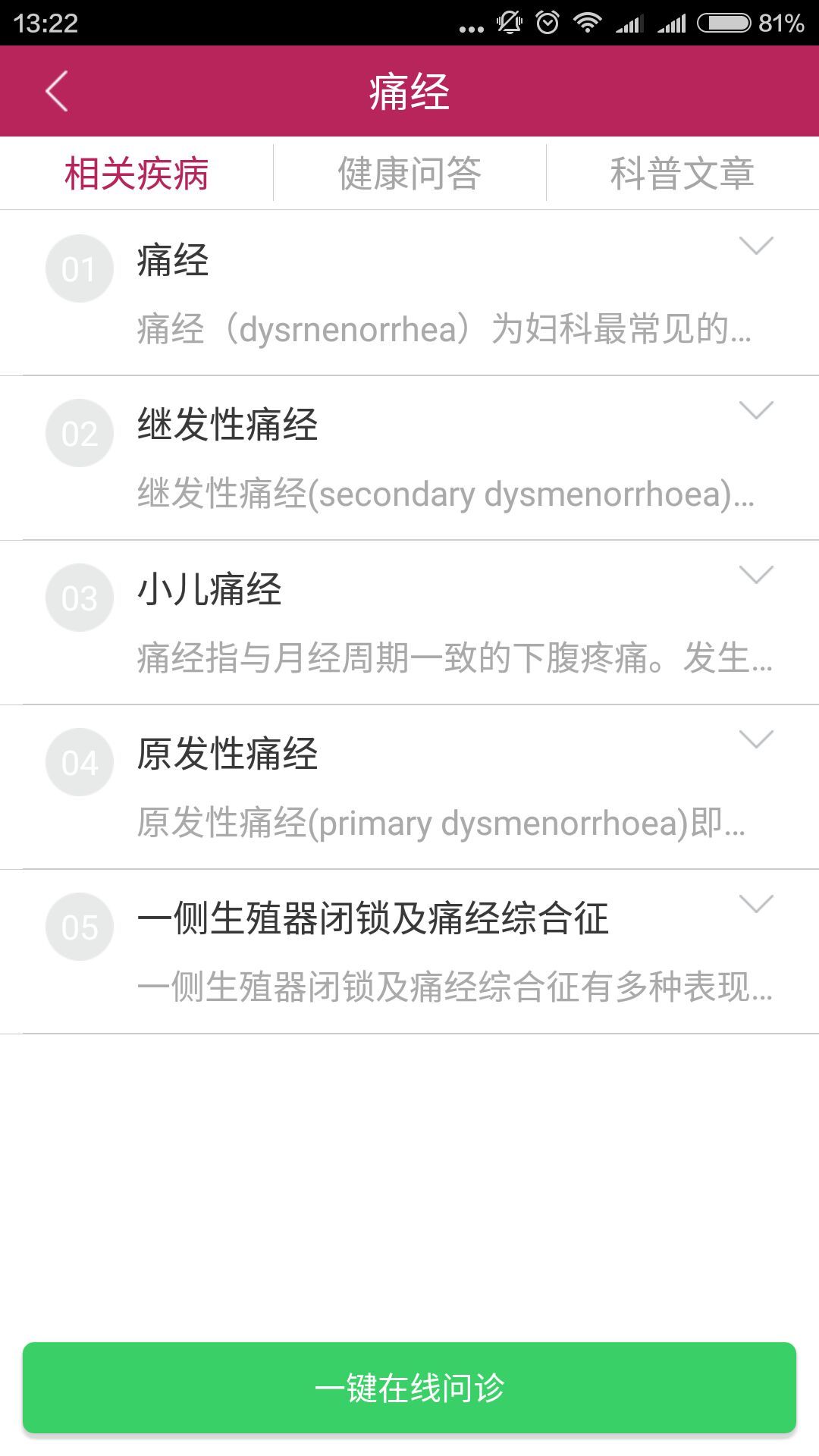 介绍经期的相关知识和内容。通过算法猜出您的兴趣,向您推荐适合您的经期知识,同时您也可以向医生进行咨询。