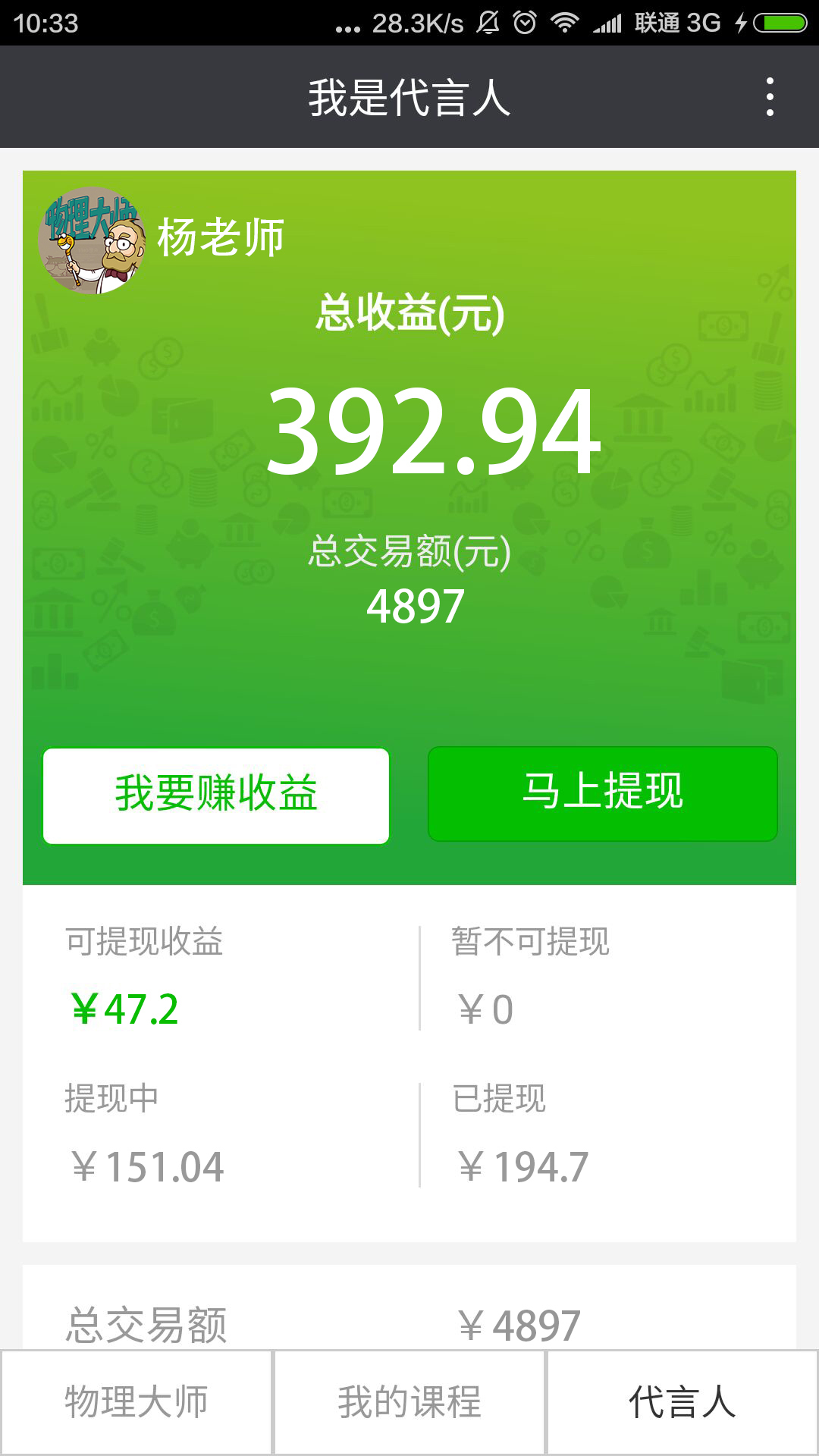 3、代言人计划:购买物理大师任意课程,即刻成为代言人,传播高效、有趣的教育理念;参与这次移动教育的变革之旅,亦有丰厚回报哦~