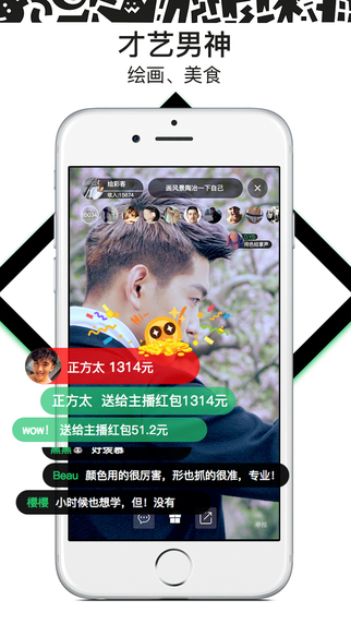任何男生,只要你愿意显示你的魅力,或者健身、游泳、绘画、外语、厨艺……等等,都可以加入魔镜直播,成为别人的男神!