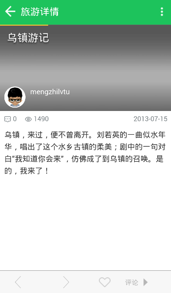 汇集各地“驴友”原创的旅游指南,详细介绍了当地主要区域的景点、美食、住宿、娱乐活动及众多的购物场所,提供详尽而且靠谱的吃喝玩乐攻略。