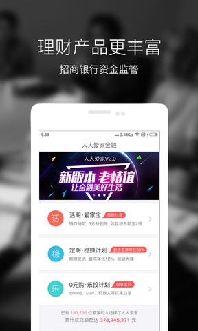 人人爱家金融是一款手机金融理财软件,这里含有丰富的理财产品,而且投资门槛低收益高,期限灵活,资金安全有保障,理财产品各方面全面覆盖,即可理财又可保健康。有需要的朋友赶快来下载吧!