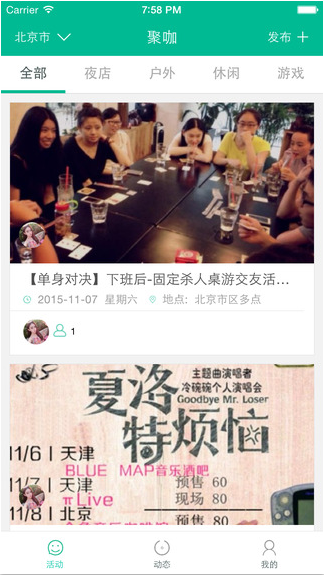 玩不是商品,聚咖是一个让大家通过好玩的事情同时认识更多新朋友的社交平台。 聚咖是一款优秀的同城活动软件, 是年轻人娱乐生活的不二选择。活动:夜店、露营、爬山、滑雪、KTV、桌游、密室逃亡等等好玩的活动。