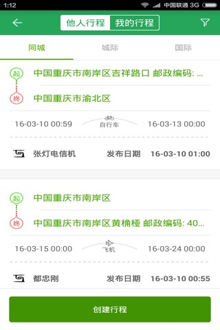 4、安排行程:发布自己的行程或行程计划及提供帮助的意愿,方便他人求助于你
