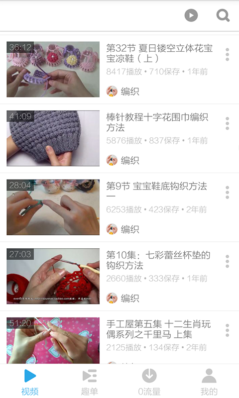 手工编织视频app是专为手工编织打造的食谱应用,能随时查看各种手工艺品的制作方法,了解各种毛衣的编织方法,更拥有各种创意编织视频,是您学习手工编织的好帮手。