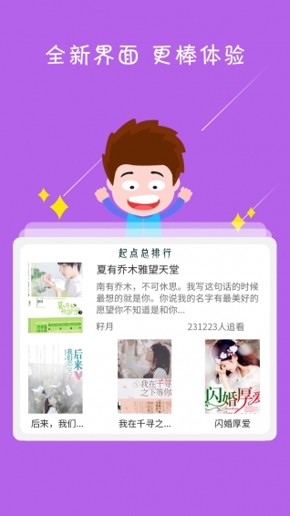 超快、超全、超新的全本小说电子书下载阅读软件。小说随身,阅读随心,丰富的资源,内容分类包括宫廷穿越、都市言情、玄幻奇幻、影视剧本、灵异科幻、武侠仙侠、青春校园、竞技游戏等,还等什么,快来体验随身阅读的乐趣。