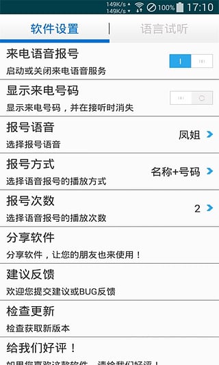 一款可以设置来电语音通知报号的软件。