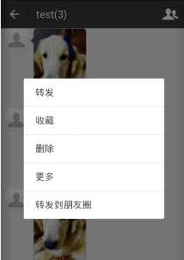 2:按住任意一张图片,即可转发该条图片+文字,点击发送即可