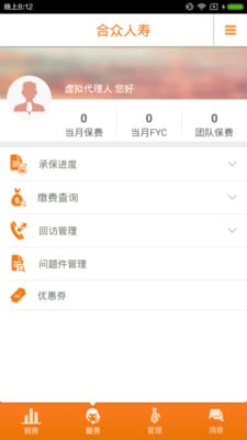 2.合众容e保ap四大功能模块:销售、服务、管理和消息;