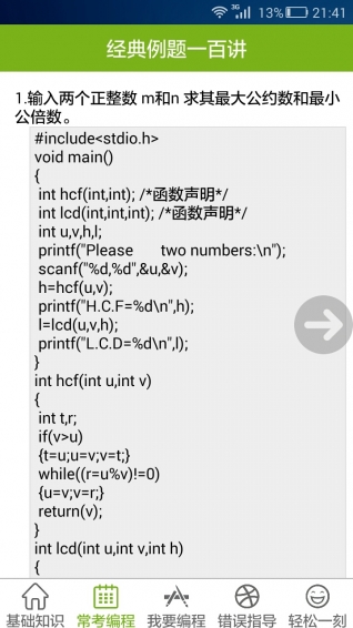 5.针对历年考试题目,本软件中整理了常考编程一百讲,再也不用担心难题、怪题了。