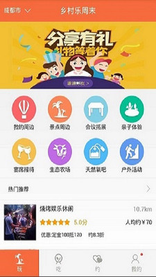 乡村乐周末是一款农场、农家乐休闲体验服务的在线预订平台,是链接全国个数十万特色农业基地与城市消费者的体验式消费电商平台。针对消费性质,平台同时为商户和消费者提供消费保障。