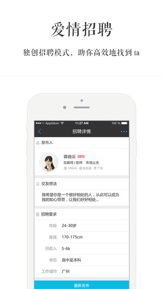 [爱情招聘]你可以大胆发布爱情招聘,找到与你志同道合的有缘人。