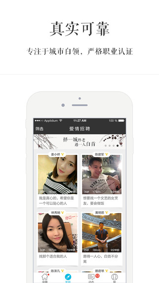 [实名认证] 实行实名制注册,用户需要进行职业的身份认证,多机制确保资料可靠。真实照片,人工审核,保护用户权益。