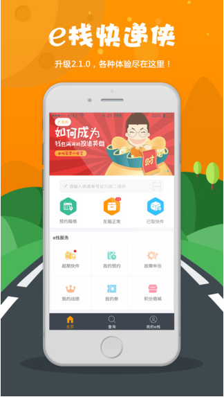 e栈快递侠是e栈智能交付终端官方指定应用,可帮助快递员简化工作流程,提高工作效率,它的绝活。e栈快递侠APP是一款快递管理方面的手机软件。用户通过这款软件可以实时掌控快递的实时状态,能够查询即将超期的快递,十分方便快捷,有需求的朋友就赶快来下载吧。