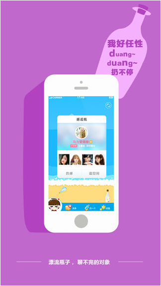 漂流瓶子, 90后小鲜肉交友神器每天有752,831,280个漂流瓶,遇见缘分的万能钥匙漂流瓶子不加好友,只和陌生人玩。只说想说的话,只聊想聊的天;漂流瓶子,一个完全奇趣新鲜的新空间。