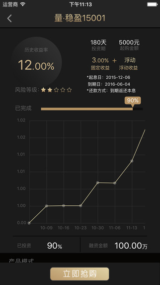 4、量·稳盈系列:6个月期限、最低年化3%固定收益,浮动收益可达年化15%以上;