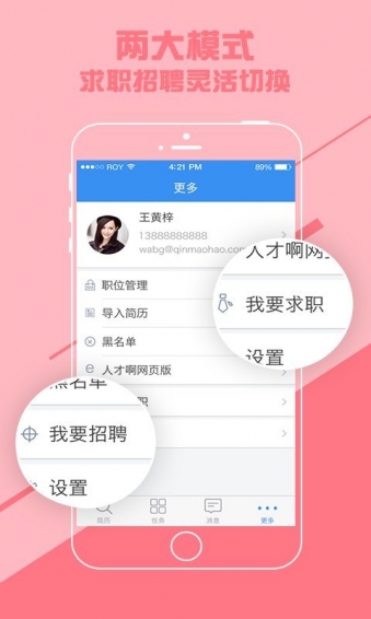 人才啊app是互联网时代的求职招聘工具,能根据求职者的简历精准推荐公司职位,对职位,求职者能收藏、能转发、能分享;让求职者能快速找到与之匹配的工作!