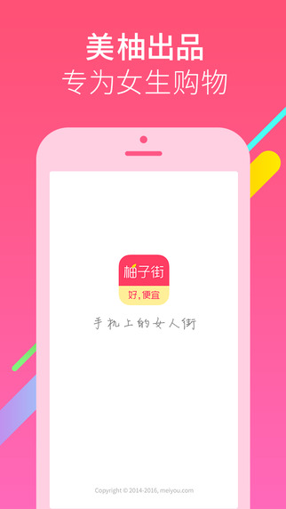 柚子街是专注于女性消费者的社区电商平台,于2015年7月份正式上线,致力于为年轻、爱美的女性搜罗来自全网的高性价比好货,包括衣服、鞋子、美妆、箱包、配饰、家居、母婴用品等在内的多品类商品。