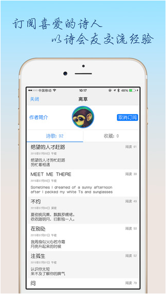 订阅喜爱的诗人,绝不错过Ta发布的新诗篇。