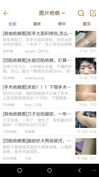 中国疤痕论坛手机客户端,是基于为广大疤友创建一个随时随地关注疤友治疗最新动态的访问工具。其方便、快捷、灵活等功能得到到广大疤友的青睐。以前疤友们要发自己疤痕处照片到论坛都是先拍照,然后上传到电脑,最后发到论坛,现在,通过手机客户端,用手机拍摄了自己的疤痕,直接发布即可以到论坛,这一创新,让疤友们无不称赞