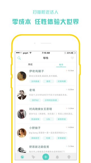 发呆犯困时,GoGet帮你扫描附近技能达人:哪里有趣点哪里,新鲜人永远都有下一个爱好、机遇和挑战。