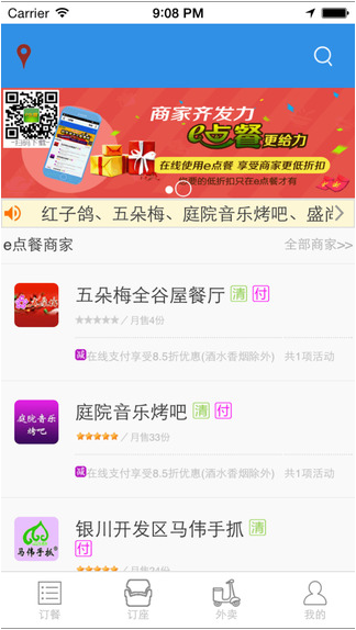 e点餐app是一款手机预约点餐应用,宁夏移动在2015年推出了这款外卖软件。该软件能够帮助用户在就餐前可以提前选择餐厅,完成预约、点菜、支付,享受不用排队等号、到店就能享受定制美食的服务;商家可通过e点餐平台发布自己的菜单、桌位、优惠活动,合理配置商家资源,更高效地开店。