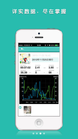 2.0版骑行者操作简单,启动骑行者后仅一个操作即可开始骑行,轨迹自动记录且全程无偏离;自动暂停功能让骑行数据更精确;所有数据实时本地保存,最大化防止轨迹丢失;骑行结束后,车友可以在wifi环境下手动上传骑行轨迹和照片,最大限度节省流量和电量。