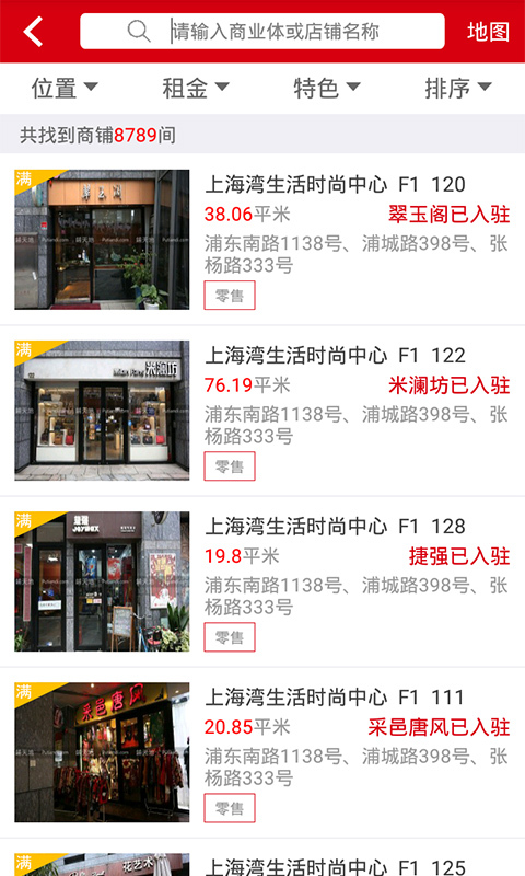 铺位基本资料、设施信息、周围环境一应俱全,支持分类筛选,信息更准确