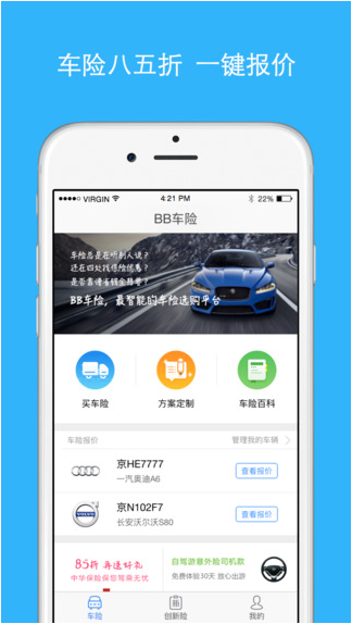 BB车险是一款车保险服务平台,实现在线精准报价;通过大数据定制个性车险方案;各大保险公司促销信息早知道;推出重磅创新险给车主更多保障。