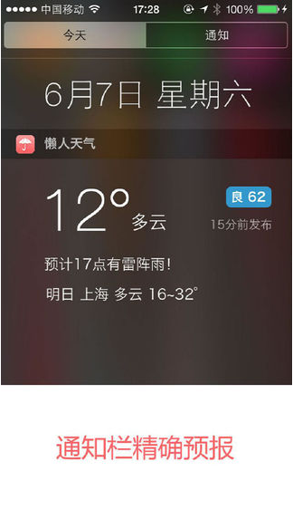 2、独创必要提醒服务:如果没收到天气提醒你大可无忧出行