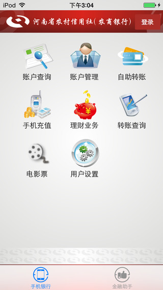 本软件是河南省农村信用社(农商银行)为个人量身打造的iPhone版手机银行服务平台,可让您随时随地享用银行服务,如余额查询、交易明细查询、行内转账、跨行转账、手机充值等。