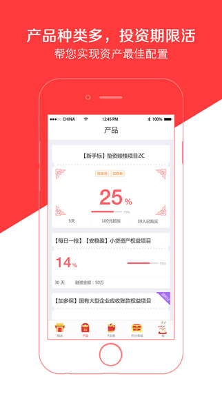 100元起即可投资理财产品,高达50倍银行活期存款收益;