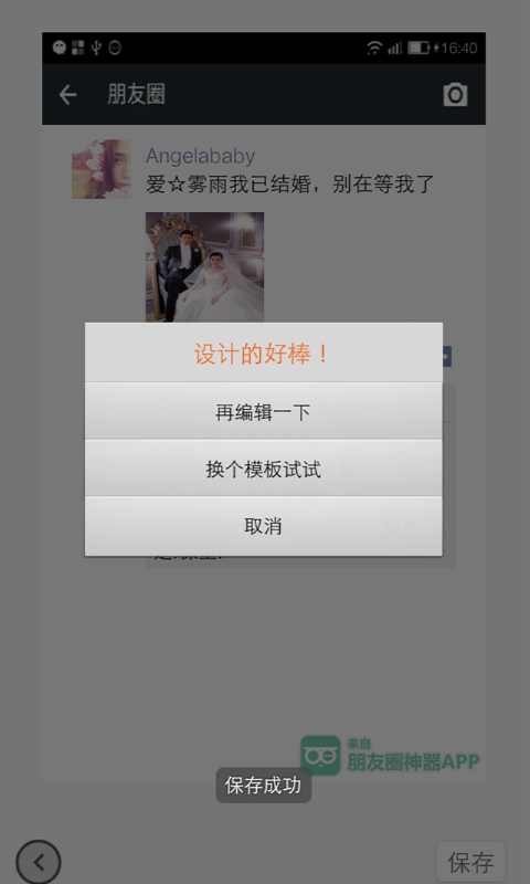 ●恶搞社区轻松查看别人的恶搞内容并轻松收为己用!想让苍井空出现在你的朋友圈吗,想让吴亦凡、周杰伦、angelababy与你贴近距离吗,快快使用朋友圈搞怪神器吧!在朋友圈装逼的梦想我们帮你承包了!